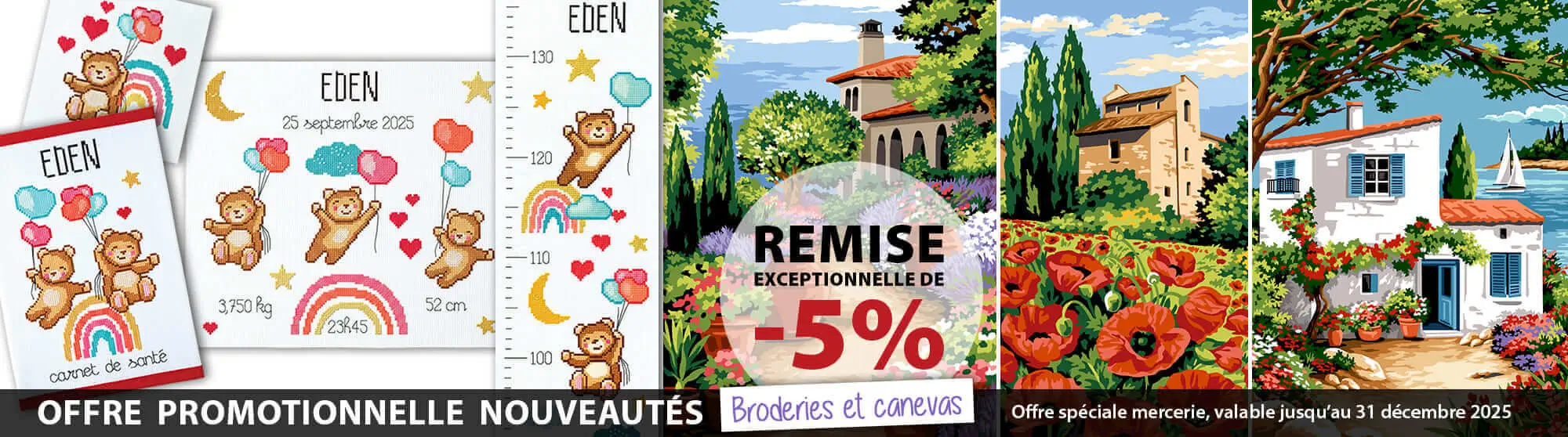 Le département Loisirs Créatifs d’Interstiss propose un des plus larges choix d’ouvrage, art du fil, kits, canevas, toiles canevas, kits coussin, kits tapis au point noué, kits canevas enfant, kits broderie, kits nappe et napperon, coupon, tissu au mètre microfibre, kits toise, carnet de santé, abécédaire, support à broder des marques SEG PARIS, Margot de Paris, Princesse, Marie Cœur, Collection Privée, Margot Broderie, Brodélia, Smyrnalaine. L’impression et les encres garantissent une haute tenue dans le temps et au soleil. Notre nouveau catalogue est disponible sur notre site ainsi qu’une aide didactique sur YouTube pour apprendre et démarrer une œuvre sans difficulté.