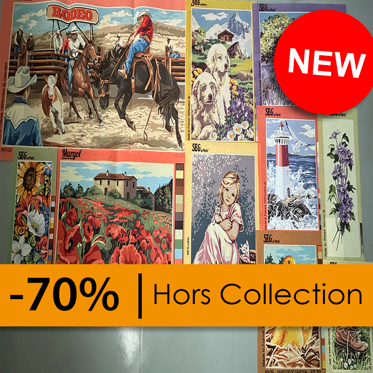 Lot de 10 Canevas Margot et SEG en déstockage. Découvrez une sélection d’ouvrage à broder des marques Margot et SEG. Ce déstockage est issue d’une sélection de produit hors collection.