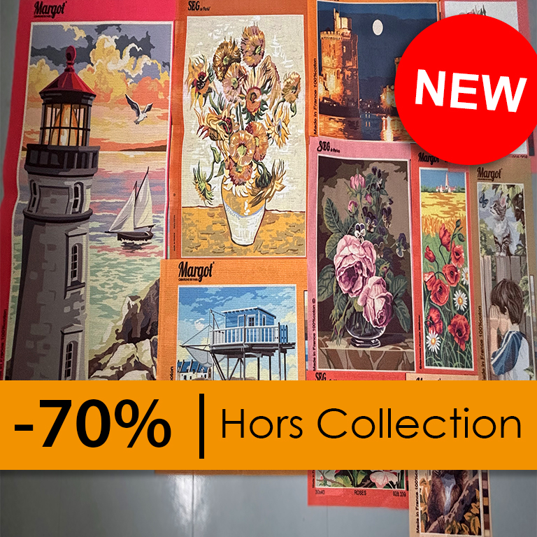 Lot de 10 Canevas Margot et SEG en déstockage. Découvrez une sélection d’ouvrage à broder des marques Margot et SEG. Ce déstockage est issue d’une sélection de produit hors collection.