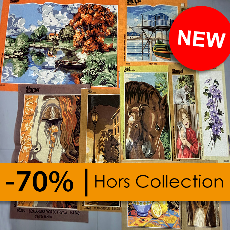 Lot de 10 Canevas Margot et SEG en déstockage. Découvrez une sélection d’ouvrage à broder des marques Margot et SEG. Ce déstockage est issue d’une sélection de produit hors collection.
