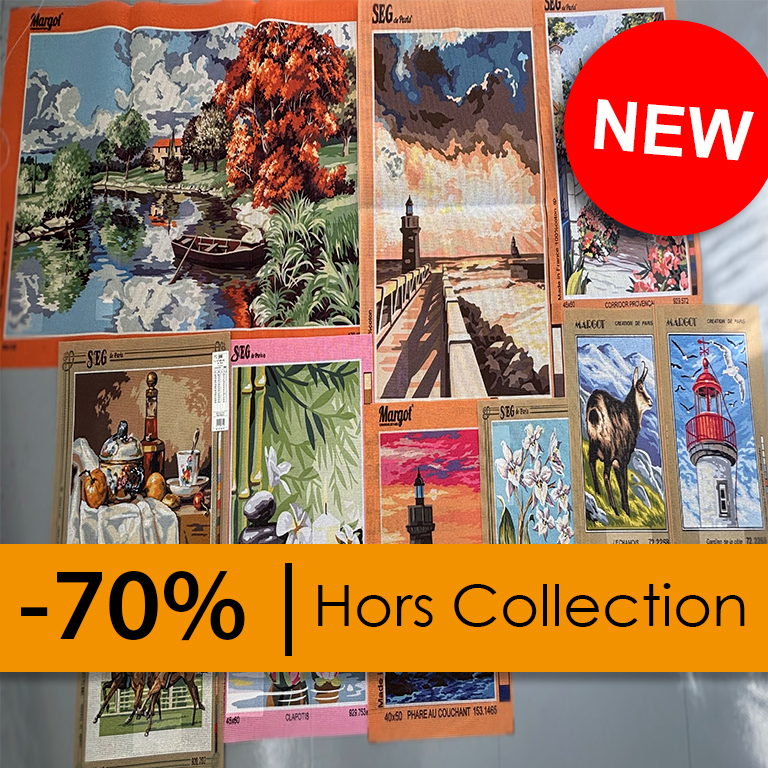Lot de 10 Canevas Margot et SEG en déstockage. Découvrez une sélection d’ouvrage à broder des marques Margot et SEG. Ce déstockage est issue d’une sélection de produit hors collection.