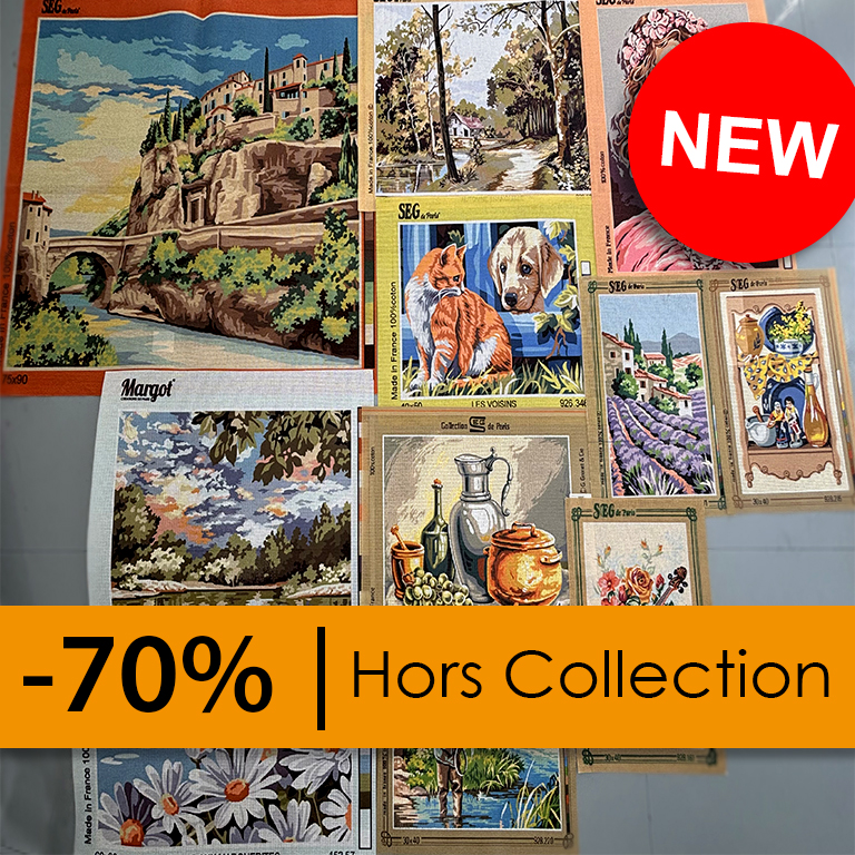Lot de 10 Canevas Margot et SEG en déstockage. Découvrez une sélection d’ouvrage à broder des marques Margot et SEG. Ce déstockage est issue d’une sélection de produit hors collection.