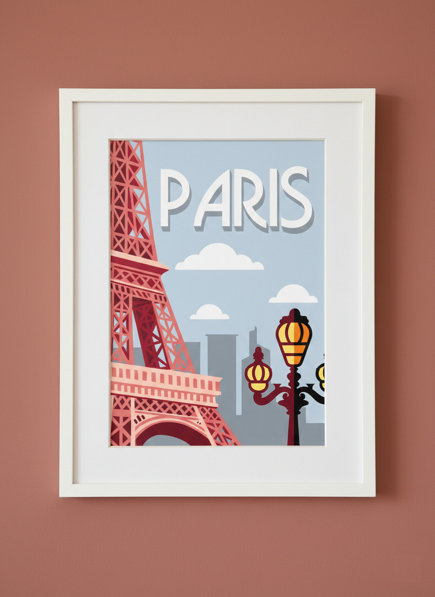 Ce modèle rend hommage à la ville de Paris avec une illustration au style « affiche vintage ».