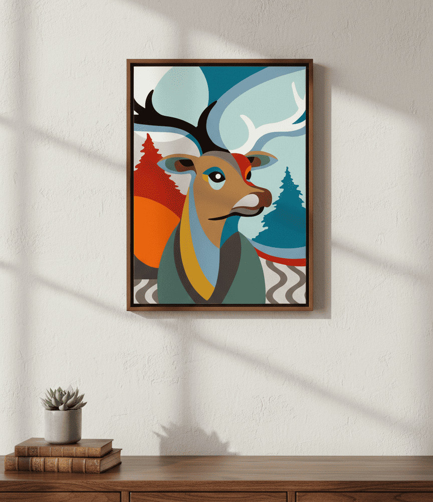 Ce modèle met en scène un portrait de cerf traité de manière