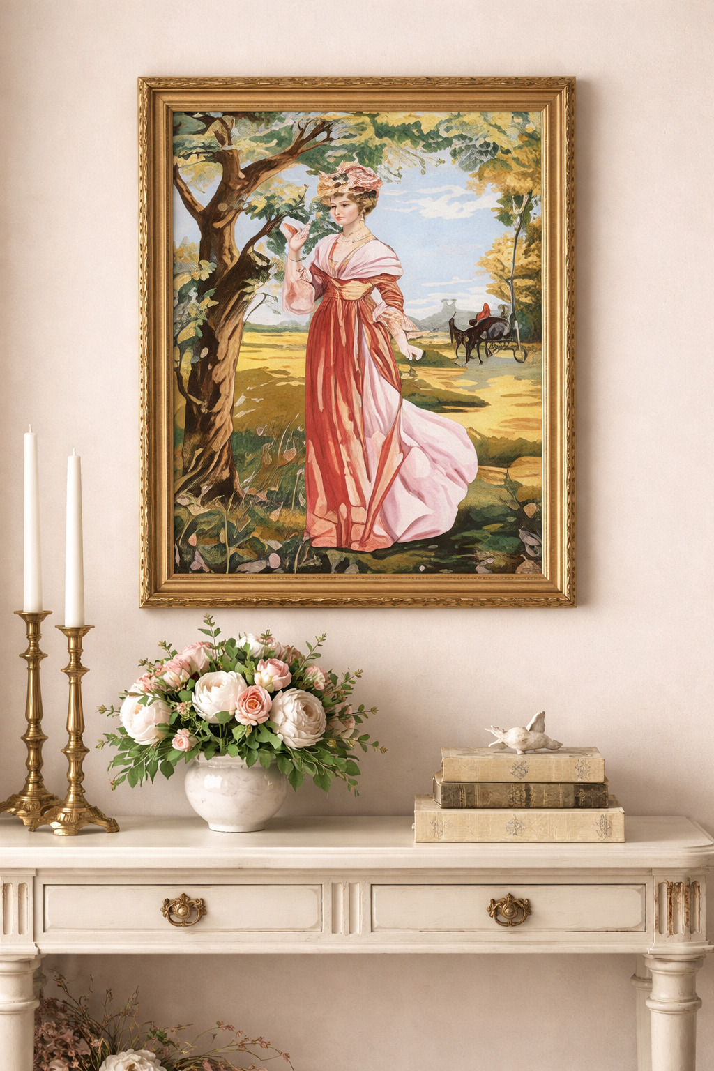 Réalisé dans un style classique et raffiné, ce tableau brodé séduit par la finesse de ses détails, l’harmonie de ses couleurs et son atmosphère douce et poétique.