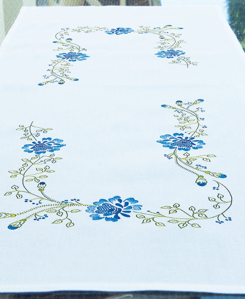 – Toile Seule (TS) : La surnappe imprimée et ourlée, prête à broder.