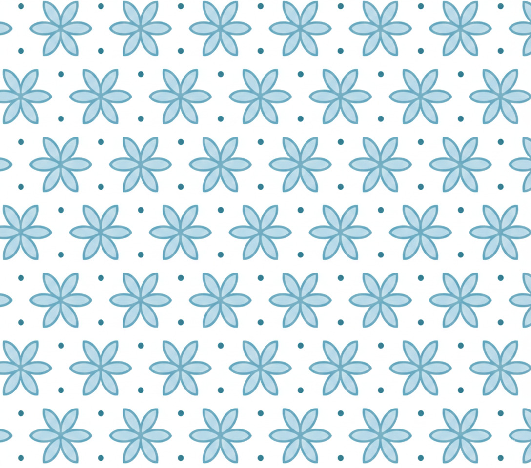 Sur un fond blanc pur et lumineux, une géométrie de fleurs se déploie dans une harmonie de bleus.