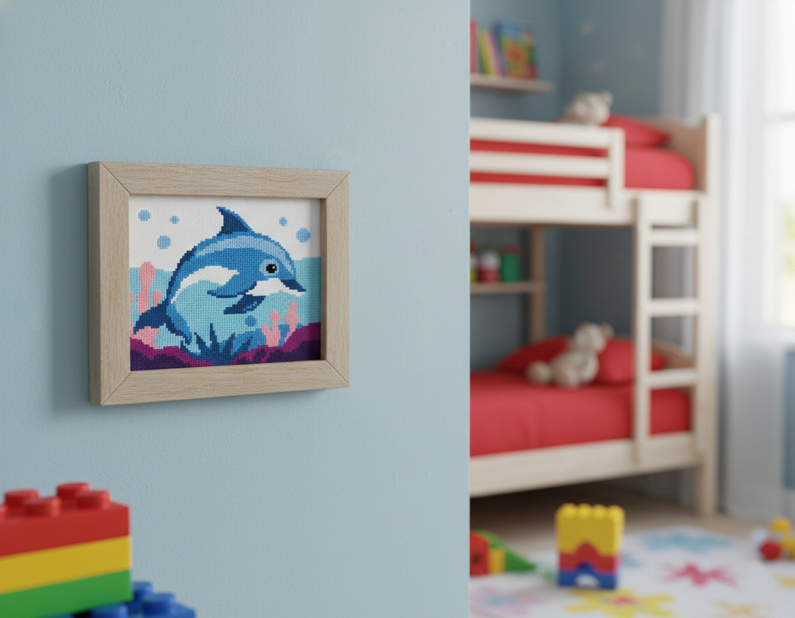 Apportez une touche de douceur marine à la décoration d’une chambre d’enfant avec ce kit de point de croix Marie Cœur.
