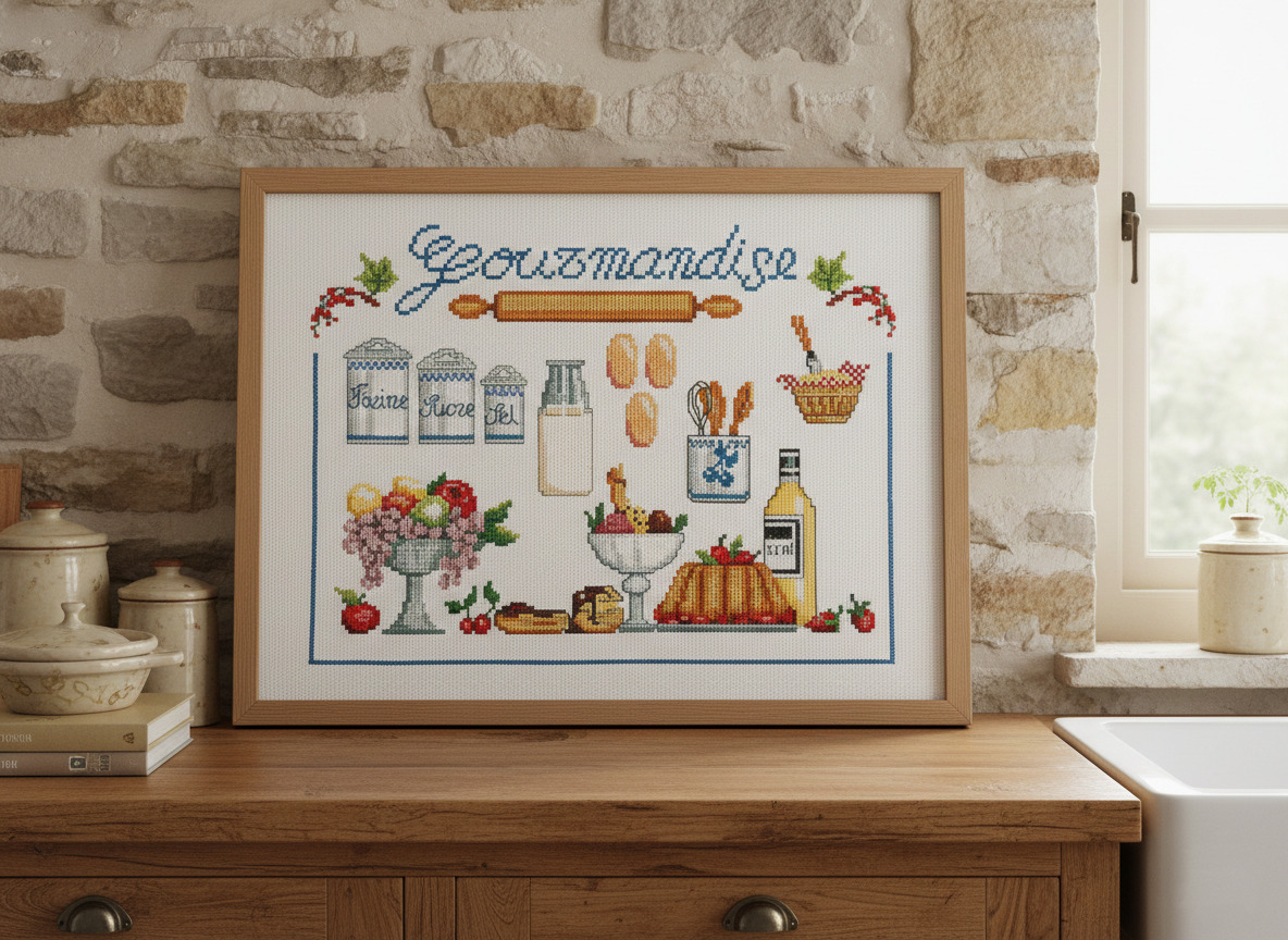 Plongez dans un univers de douceur et de nostalgie avec ce kit de broderie Marie Cœur, « Gourmandise ».