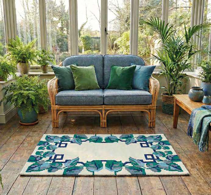 Ce modèle élégant, aux teintes de vert émeraude, bleu cobalt et turquoise, arbore un cadre végétal raffiné qui s’intègre parfaitement dans un salon lumineux ou une véranda esprit « jardin d’hiver ».