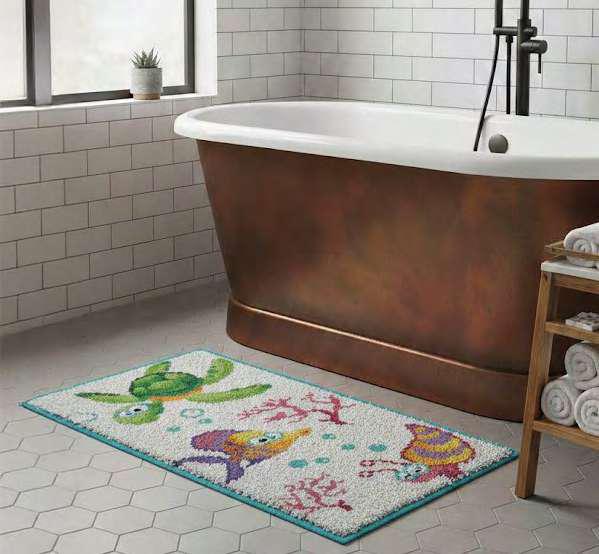 Donnez vie à votre décoration avec ce kit tapis au point noué Smyrnalaine de la marque Interstiss. Ce modèle unique aux motifs marins (tortue rigolote, poisson coloré et coraux) est idéal pour une chambre d’enfant ou une salle de bain pleine de peps.
